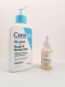 I personally like to use CeraVe SA for Rough and Bumpy skin along with, every once in awhile, some lactic acid that I bought from The Ordinary by Deciem. To be frank, I don’t keep up with it that often because it really doesn’t bother me that much! I have it all over my upper arms, but since I’m in scrubs all day, my arms are typically covered. But, when I do use it, I do see some improvement immediately. My arms have never been perfectly smooth and glamorous, but like a said, I personally don’t really care. The improvement I see typically comes in he form of redness reduction and general smoothing properties. I do know that Gold Bond and Amlactin also have moisturizers with AHAs in them to clear this up as well so I’ll definitely have to try those out in the future when my CeraVe SA runs out.